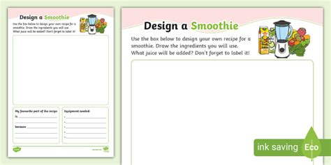 Students make their smoothie, evaluation and hand in. See more ideas about bottle design, juice packaging, beverage packaging. Worksheet/activity (no rating) 0 reviews. Design a sandwich planning worksheet. Use this worksheet to design a smoothie for a sale.