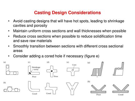 Design considerations in casting 1. Insure that you have adequate material: Casting methods metal casting process begins by creating a mold, which is the ‘reverse’ shape of the part we need. Plastic part design consideration plays a significant role in designing and manufacturing a plastic component. Design the part so that the shape is cast easily.